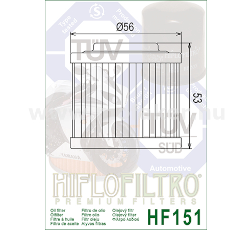 Megjegyzés: A HF151 szurö az egyik legfontosabb alkatrész a Rotax 650-es blokkal szerelt BMW és Aprilia modellekhez. Vásárlás elött kérjük, ellenörizze a pontos típust a gyártói katalógusban!