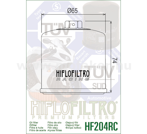 A HifloFiltro RC széria a motorsport igényeire kifejlesztett, csúcskategóriás olajszurö. A speciális "tri-fibre" szuröközeg optimális szurést, nagy kapacitást és megnövelt olajáramlást biztosít, ami elengedhetetlen a nagy teljesítményu motorok számára. Müszaki extrák: 17 mm-es rögzítö anya a szurö végén a könnyu fel- és leszereléshez. Elöre fúrt lyuk a biztonsági huzalozáshoz (versenypálya elöírás). Megerösített acél ház a maximális nyomásállóság érdekében. Szeleptechnológia a tökéletes tömítésért és visszafolyás gátlásért. Föbb kompatibilis modellek (kivonat): HONDA: CB500 F/X, CBR500R, CB600 Hornet, CBR600RR, CB650R/F, NC700/750, VFR800, CBR1000RR Fireblade, CRF1000/1100 Africa Twin, VFR1200, CB1300, GL1800 Gold Wing. KAWASAKI: ZX-6R, ER-6n/f, Z650, Z750, Z800, Z900, Z1000, Ninja 1000, ZX-10R, GTR1400, ZZR1400. YAMAHA: YZF-R6, MT-07, Tracer 7, MT-09, Tracer 9, XSR900, MT-10, YZF-R1, XT1200Z Super Tenere, FJR1300. TRIUMPH: Daytona 675, Street Triple 675/765, Tiger 800/900/1200, Bonneville T100/T120. MV AGUSTA: F3 675/800, Brutale 675/800, F4 1000. Helyettesíthetö gyári (OEM) cikkszámok: Honda: 15410-MCJ-000, 15410-MFJ-D01 Kawasaki: 16097-0002, 16097-1070 Yamaha: 5GH-13440-20, 5GH-13440-50, 1WD-E3440-00 Triumph: T1210444, T1218001 Megjegyzés: A HF204RC a hagyományos HF204 versenyváltozata, amely minden olyan típushoz jó, ahol a sima HF204-et használják. Ideális választás pályanapokhoz és utcai sportmotorokhoz egyaránt. Egyéb kód:HF204RC