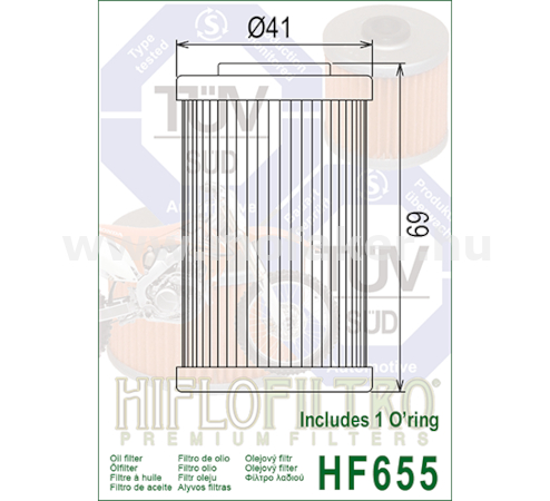 225855 Olajszűrő HF 655 HifloFiltro (KTM új, Husqvarna) 41x69mm